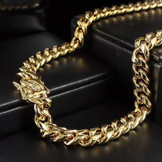 cadena gruesa tejido cubano estilo unisex en oro 14k laminado 8mm