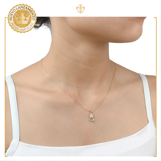 Cadena delgada con dice diseño de tulipan pequeño critales oro laminado 18k