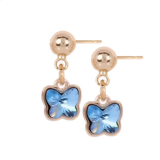 Elegantes Aretes Mariposas De Oro Lamin De 18k Con Swarovski