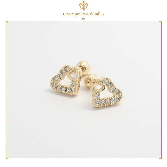 Aretes Broqueles Corazón Cristales Pequeños Para Niña Y Dama