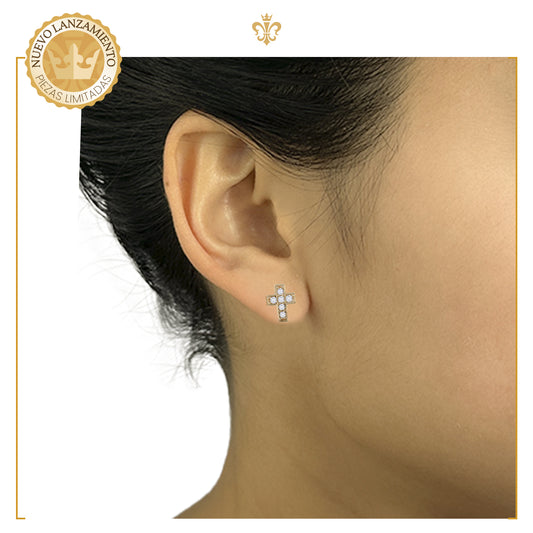 Aretes De Bolita Broqueles De Cruz Con Swarovski Para Mujer