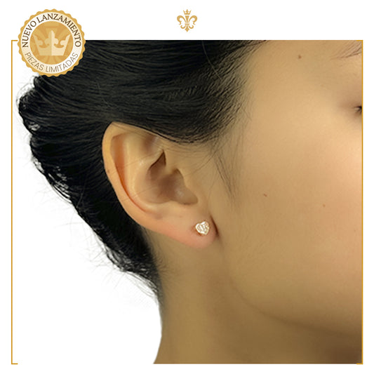 Aretes Broquel De Corazón Con Bolita De 5mm Oro Laminado 18k