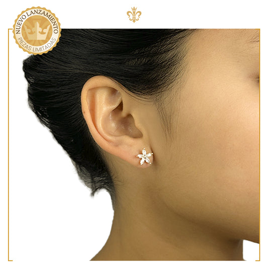 Aretes De Oro Laminado 18k De Flores Cristales Swarovski