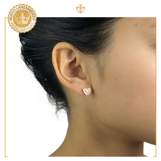 Aretes Corazón Broqueles De Bolita Con Cristales Oro Lam 18k