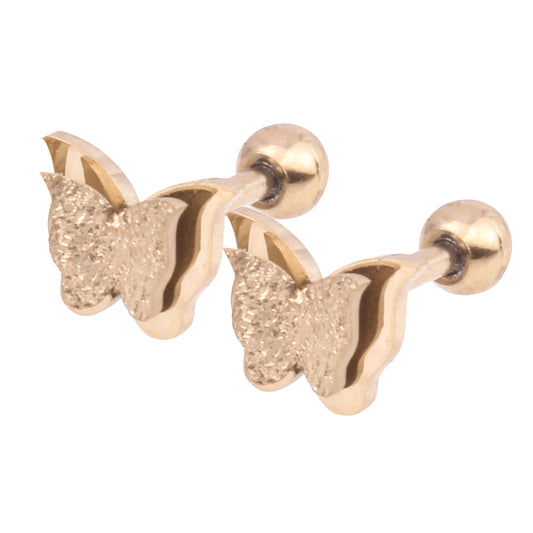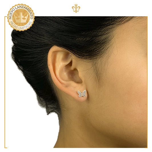 Aretes De Bolita Broquel De Mariposa Laminado Con Cristales