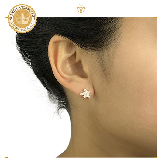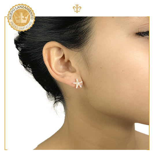 Aretes Broqueles De Bolita Estrella De Mar Cristales Mujer