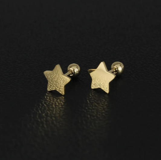 Aretes Broquel Estrella Pequeña Niña Espejo Oro Laminado 14k