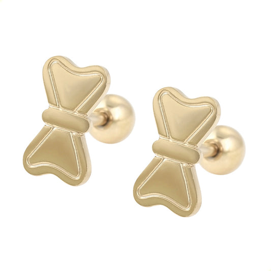 Aretes Broqueles Moños Para Niñas Liso Amarillo Oro Lam 14k