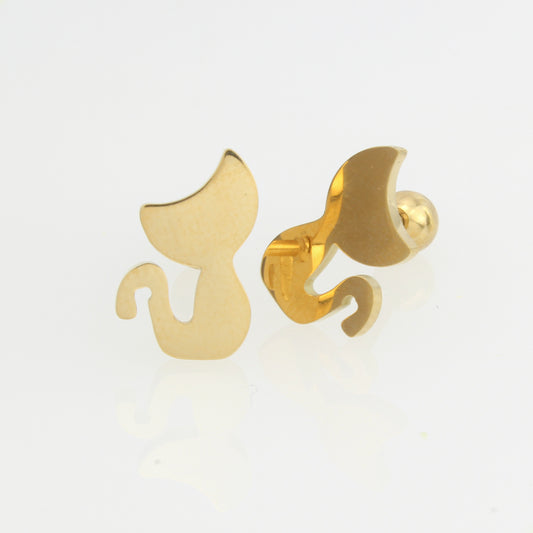 Aretes de bolita tipo broquelitos de gato liso para niña mujer en oro laminado 14k