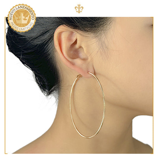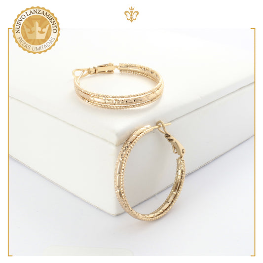 Finas Arracadas Medianas Diamantadas Con Acabados Satinado Oro Laminado