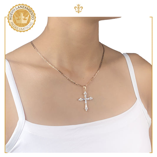 Dije De Cruz Crucifijo Con Cristales En Oro Laminado 18k