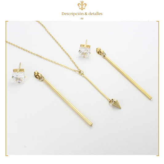 Cadena Con Dije De Péndulo Y Aretes Largos De Oro Laminado 24k