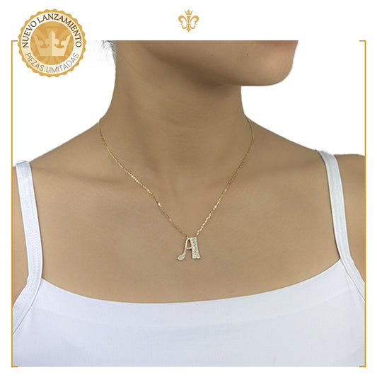Dije Letra A Cristales Cadena Delgada Plata 925 Oro Laminado