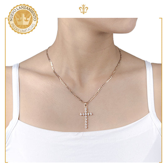 Dije De Cruz Dorado Con Cristales Para Dama De Moda Diamante