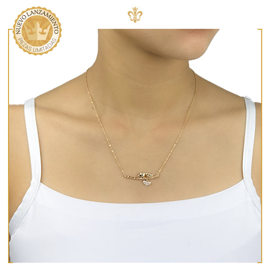Set Collar Con Pulsera De Diamantes Corazón En Oro Lamin 14k