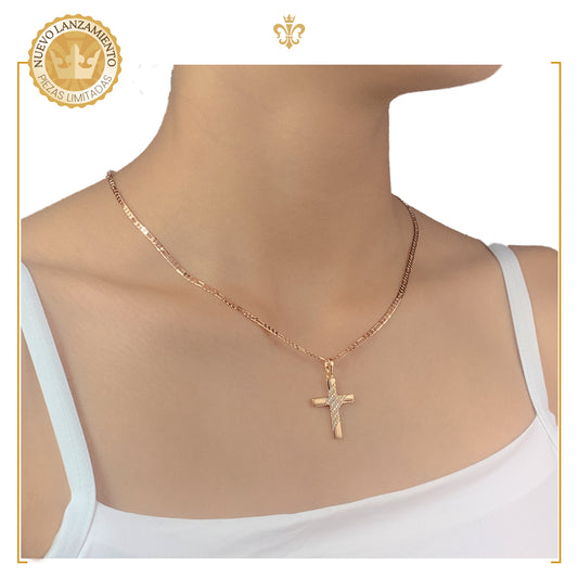 Dije Con Cadena Cruz Crucifijo Gótico con Grabados Unisex Oro Laminado
