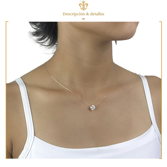 Gargantilla Transparente Dije Solitario Cristal Oro Laminado