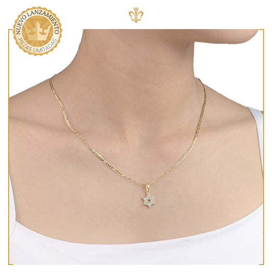 Dije De Estrella De David Diamantada En Oro Laminado Para Mujer