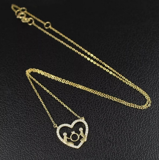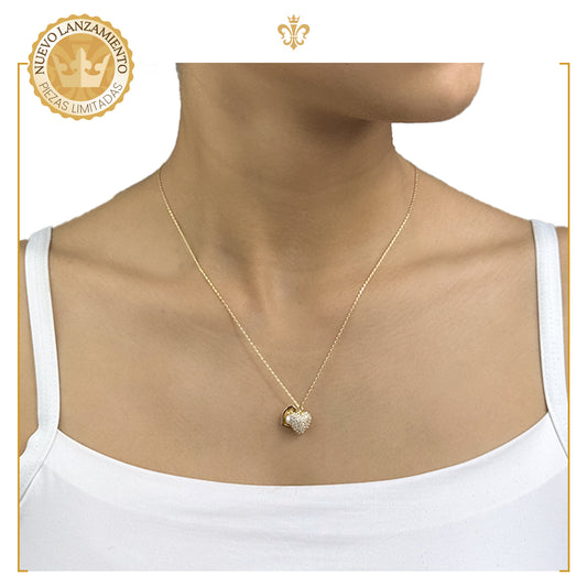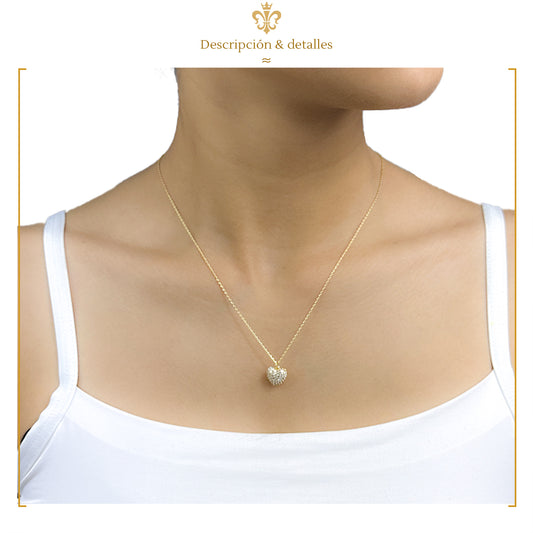 collar con dije de corazón para mujer y niña con cristales en oro laminado 14k