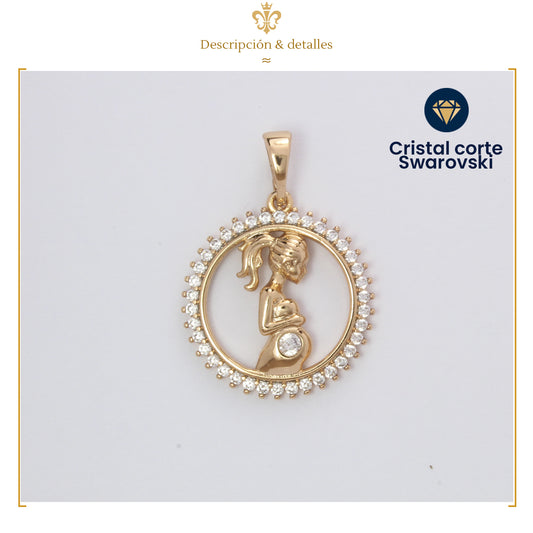 Collar Con Dije De Mujer Embarazada Con Cristales En Oro Laminado