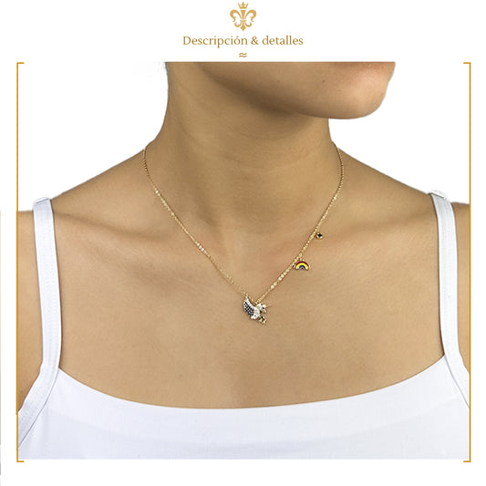 Collar con Dije De Unicornio Con Cristales Y Arcoiris unisex Oro Laminado 14k