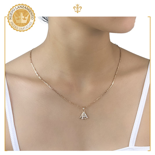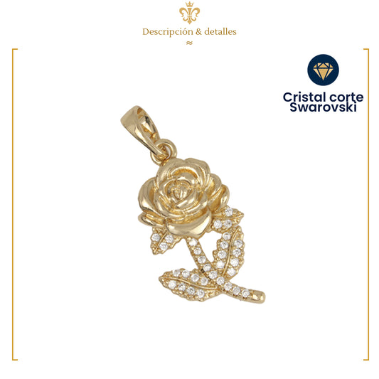 Collar Con Dije De Rosa En Finos Cristales De Oro Laminado 18k