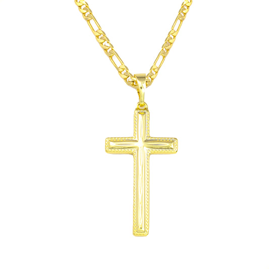 collar con dije de cruz crucifijo liso con cadena delgada figaro oro laminado 24k