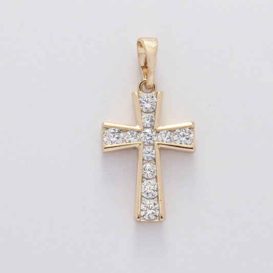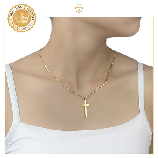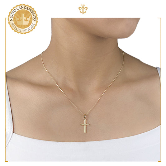 Cadena con dije de cruz pequeña lisa para mujer en oro laminado