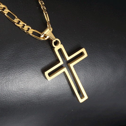 cadena collar figaro con dije de cruz crucifijo hueco unisex en oro laminado