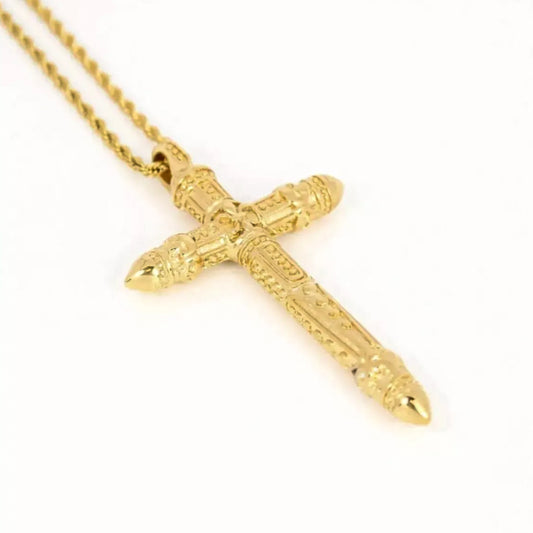 collar cadena torsal con dije de cruz colgante grabado gotico estilo unisex oro laminado