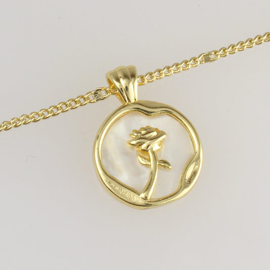 Collar Elegante De Madre Perla Con Dije De Rosa Dorado