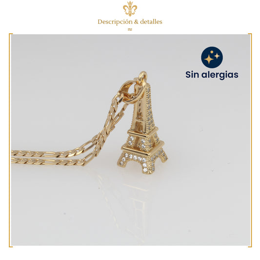 collar para mujer con dije de paris y cadena estilo figaro delgada en oro laminado