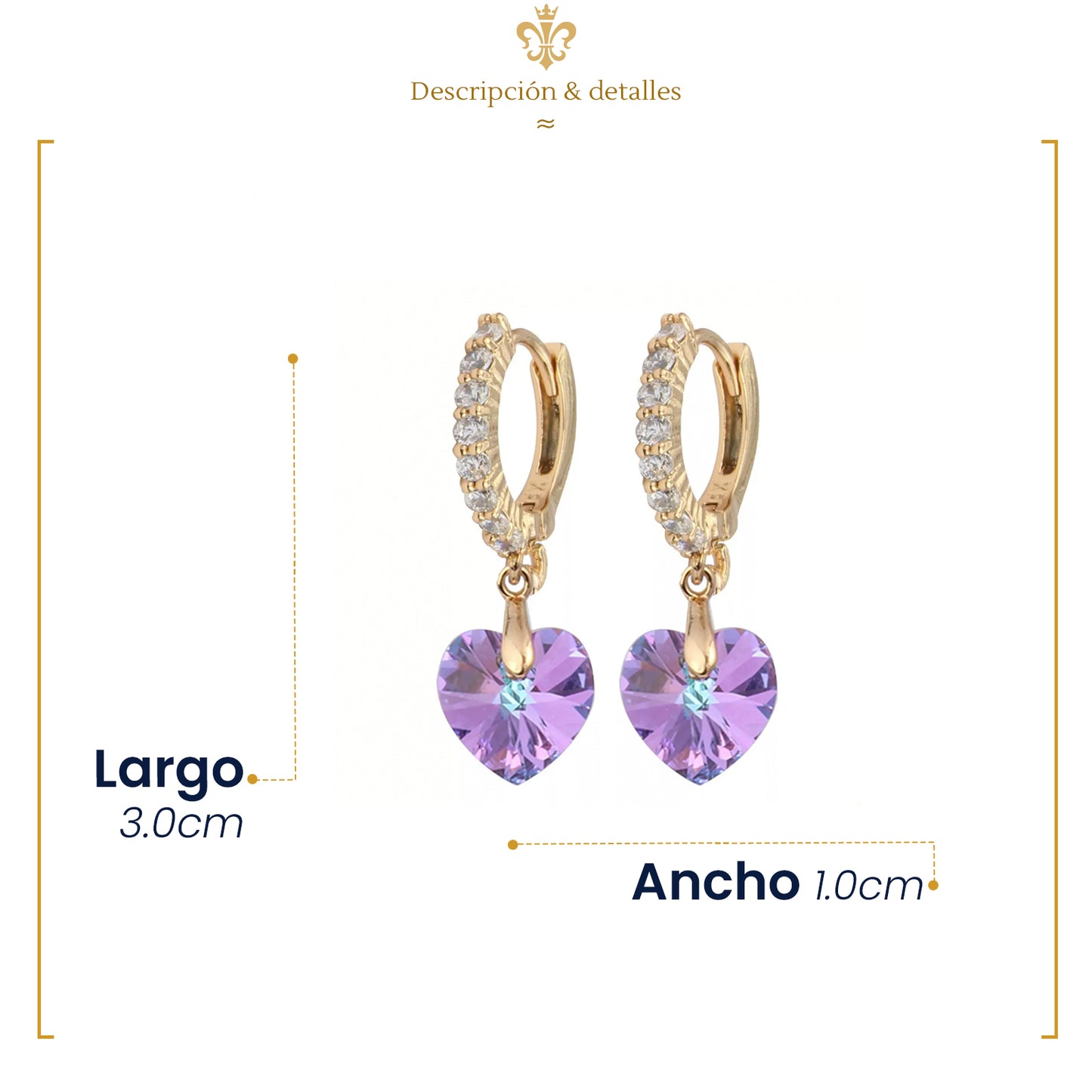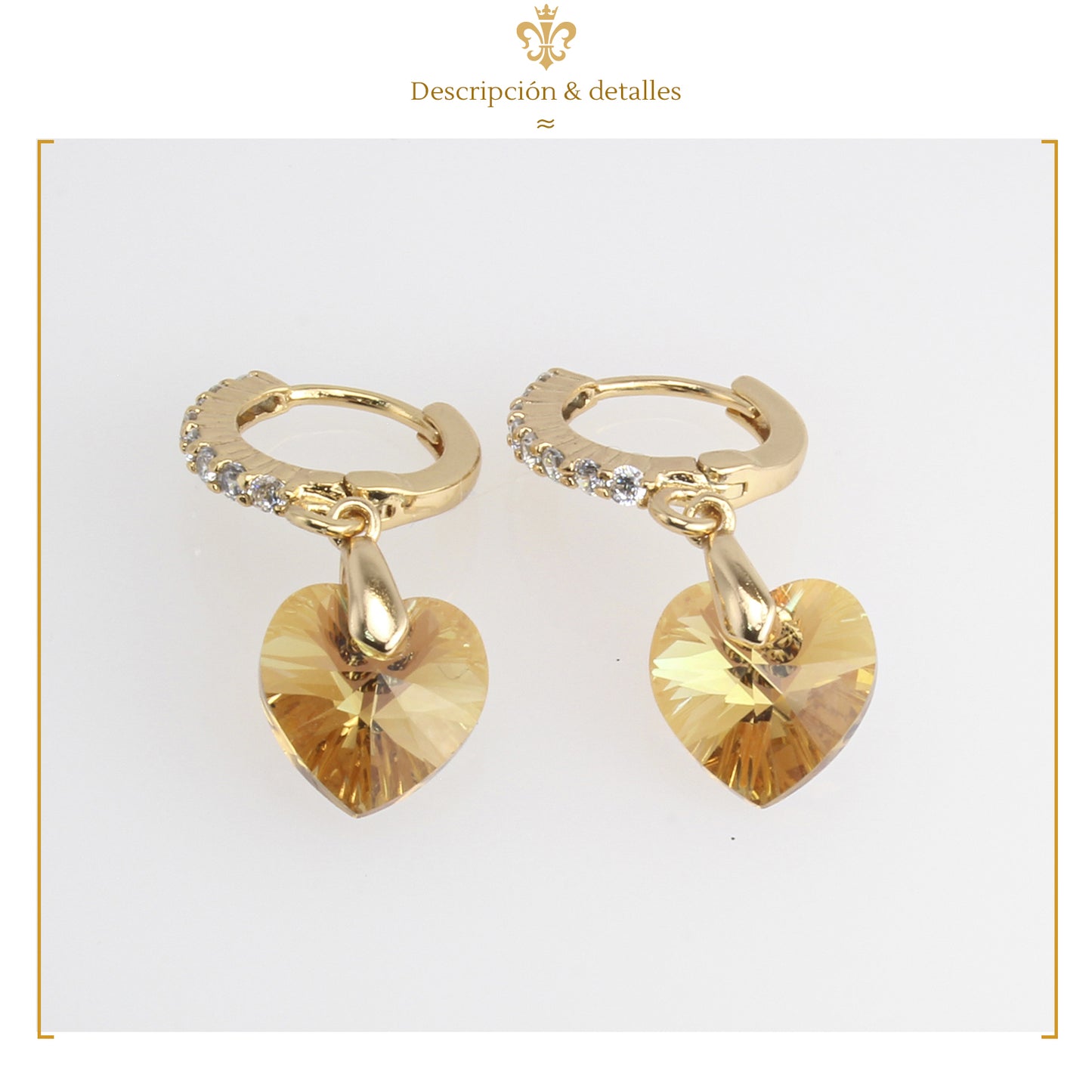 Aretes Arracaditas De Corazón Diamante Con Cristales Oro Laminado 18k