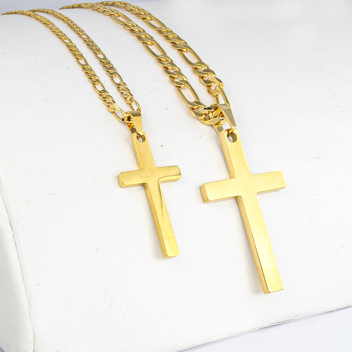 collar juego de cruz colgante lisa para pareja en oro laminado