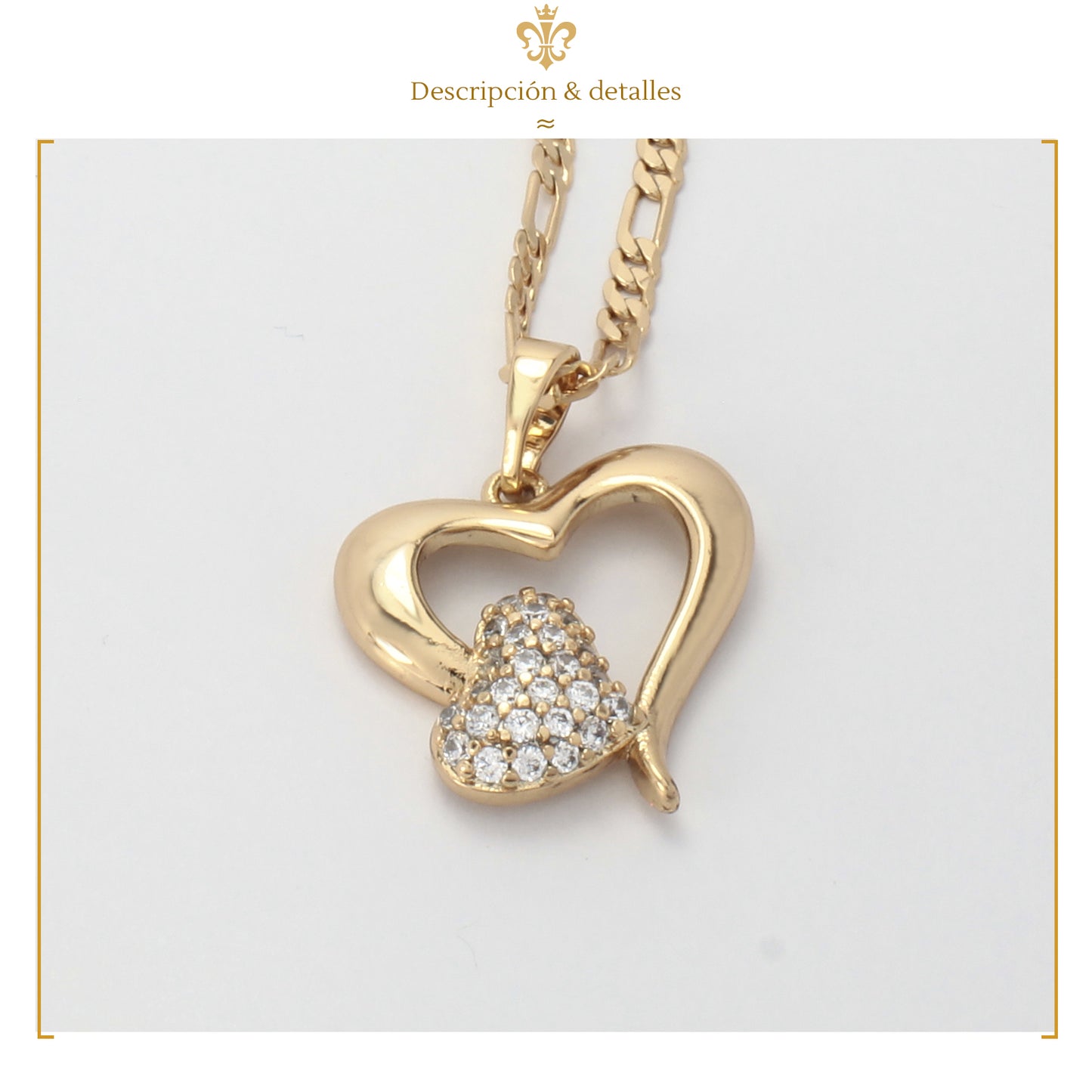 Fino Dije Collar Corazon Colgante Cristales Oro Laminado 18k
