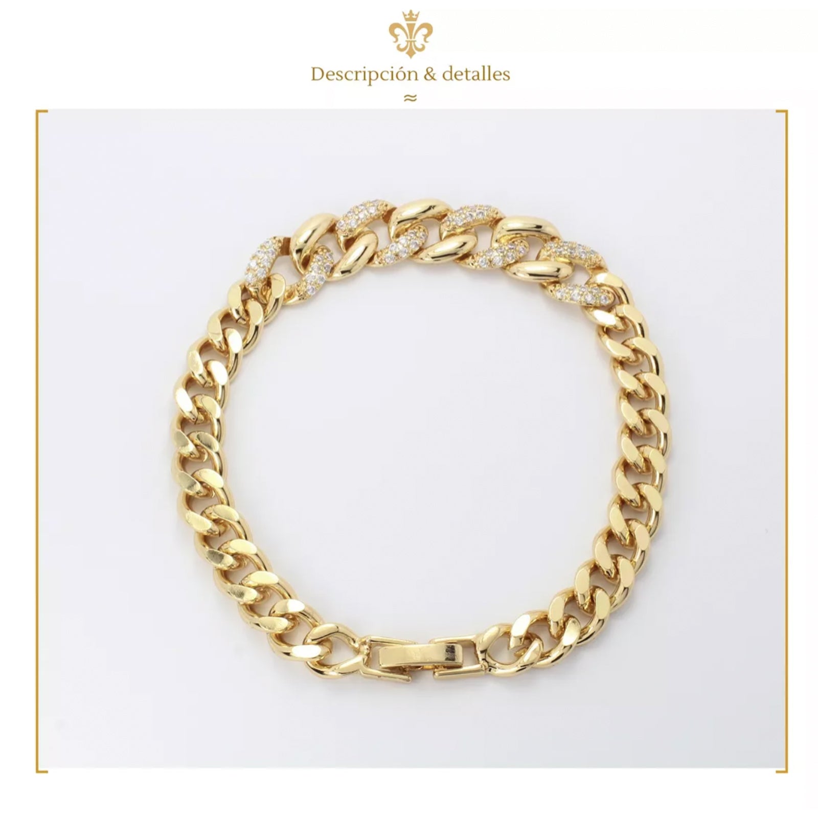 Pulsera Esclava Barbada Diamantada Hombre y Mujer En Oro Laminado